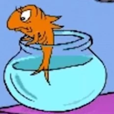 The Fish (whose name is Carlos K. Krinklebine in the 1971 Cat in the Hat TV special) is a character from The Cat in the Hat. He is a pet fish of Sally and her brother Conrad. The Fish is skeptical about the Cat in the Hat being around the house while the children's mother is out, especially when he wrecks the house. It's presumed that the Cat is a stranger who trespasses into the house, not to mention the Cat's idea of fun involves wrecking the house.